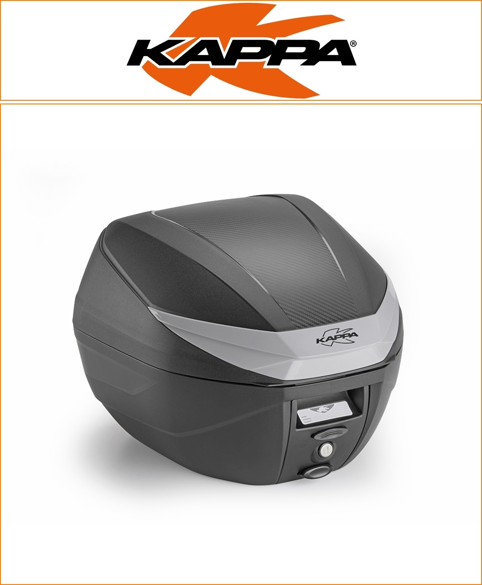 Black top-case, 30 ltr., with moulded grey insert and carbon-effect photoengraving. Complete with K628 plate